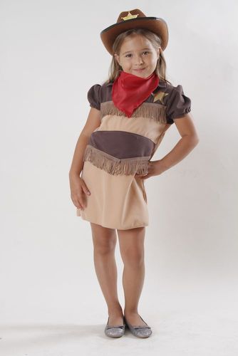 Strój składa się z sukienki ozdobionej frędzlami i nadrukiem złotej gwiazdy, chustki - apaszki.