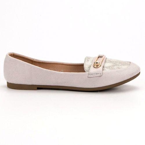 Top Shoes Balerinki Damskie Szare Ze skóry ekologicznej