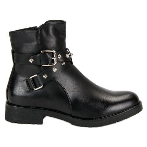 Czarne stylowe botki workery Bella Paris są to buty z podwyższoną cholewką. Są zdobione paskami z ozdobną sprzączką i dżetami co nadaje im wyrazistego, rockowego stylu. Mają delikatny obcas, są wykonane ze skóry ekologicznej co na jesienno-zimowe mokre i zimne dni zagwarantuje komfort i ochronę dla naszych stóp.