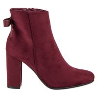 Piękny, nasycony czerwony kolor stylowych botków firmy Ideal Shoes przywodzi na myśl wieczór w restauracji z lampką wina. Te wykonane z ekologicznego zamszu buty ocieplono futerkiem i ozdobiono umieszczoną z tyłu kokardką. Obcas w kształcie słupka ma 9,5 cm wysokości i doskonale podtrzymuje stopę, wysmuklając łydkę.