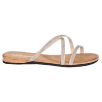 Klapki damskie Sergio Leone wykonane są z tworzywa skóropodobnego i posiadają gładką podeszwę. Wzór znajdujący się na paskach klapek nadaje im atrakcyjny wygląd, dzięki czemu będą one znakomitym uzupełnieniem letnich stylizacji. Buty te można nosić zarówno ze spodniami, jak i spódnicą czy też sukienką.