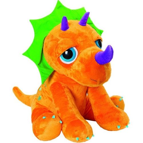 Miliony lat temu ziemię zamieszkiwały olbrzymie i groźne gady zwane dinozaurami. Te pradawne stwory nie są w cale takie straszne, a co więcej potrafią być najlepszymi przyjaciół zarówno chłopców, jak i dziewczynek. Ten pomarańczowy Triceratops nie wymaga karmienia ani specjalnych warunków swojego naturalnego środowiska, aby dożyć przy Tobie sędziwej starości. Potrzebuje tylko przytulania! W odróżnieniu od swojego stereotypowego wizerunku, nasz Triceratops ma przyjazne i miłe spojrzenie. Co więcej jest wegetarianinem. Pomarańczowy pluszak posiada zieloną kryzę, trzy rogi i niebieskie pazurki.Wiekod 3 latWymiarywys. 73 cm
