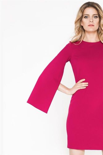 - Długie rękawy, rozcięte od pachy po wewnętrznej stronie nadają sukience niepowtarzalnego stylu