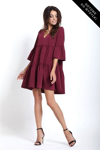 Sukienka posiada szerokie falbany, które dodają sukience dziewczęcego uroku.