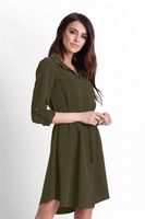 Sukienka posiada koszulową górę - posiada standardowy kołnierzyk i dekolt w kształcie litery V.