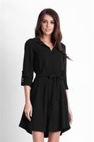 Sukienka posiada koszulową górę - posiada standardowy kołnierzyk i dekolt w kształcie litery V.