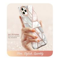 Smuklejsza forma pancernej ochrony to etui Supcase Cosmo. Obudowa wykonana została z dwóch uzupełniających się materiałów - amortyzującego TPU oraz wzmacniającego go poliwęglanu. Taka konstrukcja, pomimo zmniejszonych gabarytów w stosunku do konwencjonalnych etui pancernych, pozwala na skuteczne tłumienie ekstremalnych upadków. Dodatkowo przedni panel wyposażony został w ramkę co pozwala nie tylko separować ekran przy bezpośrednim położeniu telefonu wyświetlaczem do powierzchni płaskiej ale również zabezpiecza przednią część telefonu przed zarysowaniami gdy upadnie na nierówności.