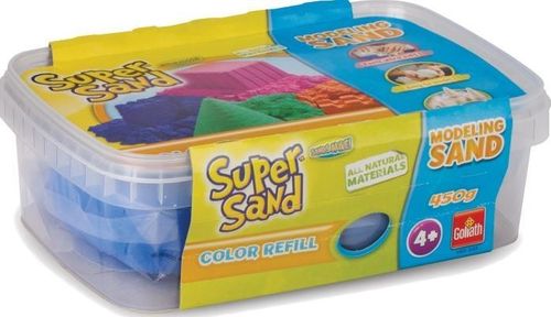 Super Sand Color - Zestaw z kolorowym piaskiem, pozwalający zacząć zabawę lub uzupełnić braki w już posiadanych zestawach. W zestawie znajduje się wyłącznie piasek Super Sand w jednym z czterech kolorów. Zamki na piasku Lato - słońce i plaża. Super Sand przenosi lato i zabawę piaskiem do domu. Super aksamitne w dotyku, suche a jednocześnie antybakteryjne i 100% naturalne, takie jest tworzywo Super Sand. Piasek, który można używać jeszcze raz i jeszcze raz i jeszcze Zrób babkę z piasku albo zamek z fosą. Dołączone narzędzia i piękne foremki pomogą stworzyć czego dusza zapragnie. Masa Super Sand składa się z naturalnych składników mineralnych. Jeżeli coś się rozsypie poza piaskownice, nie ma problemu ponieważ masa ma specjalną strukturę pomagającą w utrzymaniu czystości. Super Sand stymuluje kreatywność dzieci. Daj się ponieść swojej wyobraźni i ciesz się swoimi kreacjami z Super Sand! Teraz dzięki kolorowym piaskom twoje kreacje nabiorą barw! Dotknij aby poczuć różnice. Zestaw zawiera 450g piasku Super Sand.