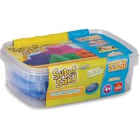 Super Sand przenosi lato i zabawę piaskiem do domu. Super aksamitne w dotyku, suche a jednocześnie antybakteryjne i 100% naturalne, takie jest tworzywo Super Sand. Piasek, który można używać jeszcze raz i jeszcze raz i jeszcze… Zrób babkę z piasku albo zamek z fosą. Dołączone narzędzia i piękne foremki pomogą stworzyć czego dusza zapragnie. Masa Super Sand składa się z naturalnych składników mineralnych. Jeżeli coś się rozsypie poza „piaskownice”, nie ma problemu ponieważ masa ma specjalną strukturę pomagającą w utrzymaniu czystości. Super Sand stymuluje kreatywność dzieci. Daj się ponieść swojej wyobraźni i ciesz się swoimi kreacjami z Super Sand! Dotknij aby poczuć różnice.