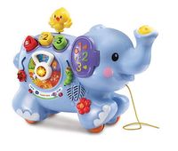 Uroczy Słoń podczas ruchu zabawnie porusza uszami, zapraszając dziecko do zabawy. Posiada wiele ruchomych elementów na całej powierzchni zabawki, które wzmacniają umiejętności motoryczne dziecka: ruchomy ptaszek, przesuwana gąsieniczka oraz biedronka, obracany kwiatek, ruchoma kulka.