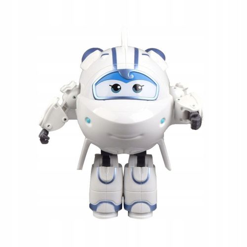 Oryginalna zabawka z bajki Super Wings. Maszyna w wersji podstawowej jest samolotem, który w kilku prostych krokach można przekształcić w robota. Zabawka posiada ruchome kółeczka. Zabawka przeznaczona dla dzieci od 3 roku życia,nie wymaga baterii.