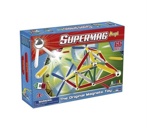 SUPERMAXI to klocki magnetyczne skonstruowana na bazie linii Supermag, składające się z kombinacji pałeczek i kulek. Ich największym atutem jest wielkość. Pałeczki są sporych długości 9,5 cm oraz 6,5 cm co pozwala tworzyć duże, okazałe budowle!