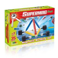 SUPERMAG to magnetyczne klocki składające się z kombinacji pałeczek i kulek. Pałeczki i kulki pozwalają tworzyć duże, okazałe budowle! Klocki wspomagają rozwój dziecięcej kreatywności, wyobraźni przestrzennej, percepcję kształtów geometrycznych oraz umiejętności manualne, a także kształtują wytrwałość w wykonywaniu czynności. Namagnesowane elementy należy łączyć biegunami różnoimiennymi + z -, tworząc dowolne kształty, figury czy fantastyczne konstrukcje. Z SUPERMAG wybudujesz wszystko - piramidy, kule, sześciany, pojazdy, zwierzęta, konstrukcje architektoniczne. Klocki pozwalają na dokładne odtworzenie kształtów różnych obiektów. Pręciki mają wyprofilowane końce, co pozwala na przyłączenie wielu pręcików do jednej kulki. Linia Supermag Maxi Wheels łączy w sobie wszystkie wspaniałe cechy magnetyczne linii Supermag z kołami, które dodają ruchu do zabawy. Dzięki zastosowaniu wkręcanych prętów, przekłutych kulek i gumowych kółek, które są dostarczane z zestawami Supermag Maxi Wheels, dzieci mogą zbudować solidną podstawę dla pojazdów, a następnie mogą zbudować na niej co chcą za pomocą magnetycznych prętów. Samochody lub inne poruszające się obiekty są bardzo łatwe do zbudowania. Każde pudełko zawiera książeczkę z instrukcjami i przykładami budowli. Klocki są w mieszanych kolorach.