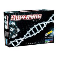 Klocki magnetyczne Supermag Style 50 włoskiej firmy Plastwood. Proste pręciki zakończone magnesami łączą się dzięki metalowym kuleczkom. Elementy można doczepiać dowolnie, bez żadnych ograniczeń tworząc wspaniałe przestrzenne budowle. Pręciki mają wyprofilowane końce, co pozwala na przyłączenie wielu pręcików do jednej kulki.Seria Style przeznaczona jest dla nastolatków powyżej 14 roku życia. Zawiera drobne elementy, magnetyczne pręciki są srebrne, czarne lub białe. Tworzone z nich konstrukcje mogą pomóc w nauce.Zabawka wspomaga rozwój intelektualny, rozwija wyobraźnię przestrzenną, percepcję, kreatywność oraz zdolności manualne.W zestawie znajdują się 24 elementy, w tym krótkie pręciki magnetyczne i metalowe kuleczki do ich łączeniaPLASTWOOD to włoska firma, zaliczana do grona największych producentów zabawek magnetycznych na świecie. Produkt występuje w różnych wersjach kolorystycznych (biały, srebrny, czarny) – wysyłany jest losowo bez możliwości dokonania wyboru.Producent: PlastwoodKod kreskowy: 8027352002010