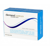 dermena® complex to suplement diety o odpowiednio dobranej kompozycji składników pomagających zachować zdrowe włosy, paznokcie i skórę. Stanowi połączenie wyciągu z lnu LinumLife® EXTRA oraz ekstraktu ze skrzypu polnego z zestawem najważniejszych witamin i mikroelementów. Zawarte w preparacie składniki (biotyna, cynk, selen) pomagają zachować zdrowy wygląd włosów i ich naturalną gęstość. Ponadto pomagają utrzymać paznokcie we właściwym stanie. Witamina B6 bierze udział w normalnej syntezie aminokwasu siarkowego - cysteiny, jednego z podstawowych komponentów keratyny, która jest głównym budulcem włosów. Wyciąg ze skrzypu polnego przyczynia się do utrzymania prawidłowego stanu włosów, paznokci i skóry, a także jest źródłem krzemu. Wzmacnia włosy i wspiera ich kondycję. dermena® complex uzupełnia dietę w substancje odżywcze odpowiedzialne za prawidłowy stan włosów oraz pozytywnie wpływające na wygląd skóry i paznokci.