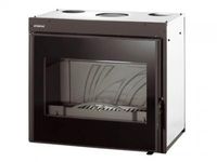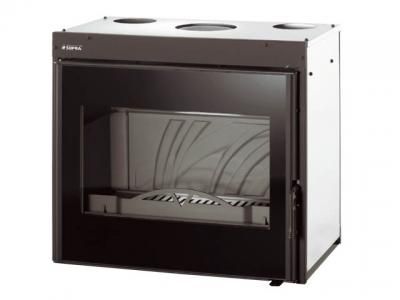 Wkład kominkowy o szerokości 67 cm. Fasada całkowicie oszkolona. Nowoczesna dekoracja żeliwnego wnętrza. Urządzenie fabrycznie wyposażone w dystrybutor gorącego powietrza. Podwójne spalanie. Deflektor izolowany. System "czysta szyba" Dolot powietrza z zewnątrz do paleniska.