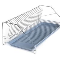 Suszarka do naczyń z ociekaczem. Suszarka wykonana jest z drutu chromowanego, Na dole znajduje się plastikowa wyjmowana tacka która zbiera wodę ściekającą z naczyń.