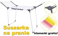 Suszarka do prania model DeLUx marki GOODHOME Nie masz miejsca na suszenie swojej odzieży po praniu? Nasza suszarka rozwiąże Twoje problemy! Składana uniwersalna suszarka DeLuxe pozwoli powiesić aż do 20 metrów prania! Oprócz tradycyjnej powierzchni na mocnych, grubych prętach suszarka wyposażona jest w 2 praktycznie wieszaki na bieliznę i skarpety. Oprócz tego w komplecie znajdzie 20 kolorowych klamerek, które na pewno przydadzą się do rozwieszania prania | ![]() |