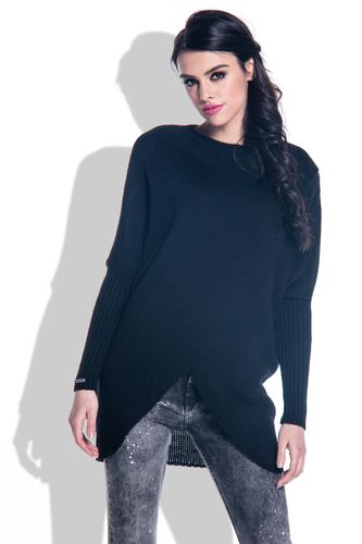 Luźny, wygodny sweter oversize, z długimi rękawami. Modelka ma 173 cm wzrostu i ma na sobie rozmiar S/M.