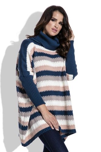 Ciepły sweter oversize z golfem. Piękne zestawienia pasków, nie pozwalają przejść obojętnie obok tego uroczego sweterka.
