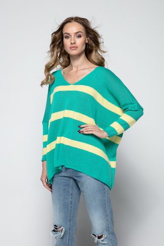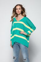 Wygodny sweterek z motywem pasków oraz dekoltem V.
