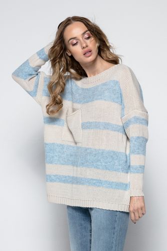 Luźny sweter w paski, z mieszanki wełny, kaszmiru i akrylu. Z przodu mała kieszonka.