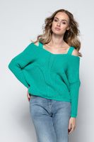 Sweterek damski, który pięknie odsłania ramiona i eksponuje szyję. Lekki, w pięknych kolorach oraz z oryginalnym splotem będzie idealną propozycja na wiosnę.