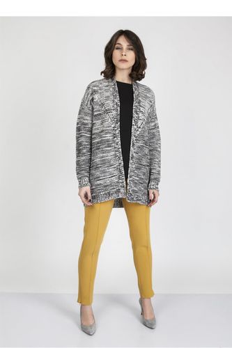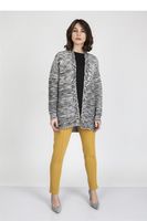 Melanżowy kardigan z efektownymi, skośnymi cięciami. Modny rękaw typu drop-sleeve i ciekawa kolorystyka czynią go nowoczesną propozycją, która wyniesie twoją garderobę na nowy poziom. Noś go jako przedłużany żakiet lub jako lekki płaszczyk. Wymiary podane według polskich norm, mierzone na płasko +/-10% tolerancja w dzianinie SWE102 S M L Długość rękawa: 75cm 76cm 77cm