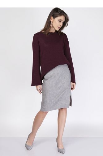 Bardzo kobiecy sweter z dekoltem w łódkę i rozszerzanymi rękawami w stylu lat 70. Zastąpi elegancką bluzkę, gdy zestawisz go z ołówkową spódnicą, a założony do dżinsów stanie się twoim ulubionym ubraniem na co dzień.Tabela wymiarów:Wymiary podane według polskich norm.+/-10% tolerancja w dzianinieRozmiary: S M LSzerokość: 53cm 57cm 61cmDługość: 59cm 60cm 61cmDługość rękawa: 50cm 50cm 49cm