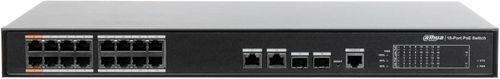 SWITCH POE DAHUA PFS4218-16ET-190 przeznaczony jest do zasilania kamer IP pracujących w standardzie IEEE 802.3af/at. Urządzenia może być stosowany w instalacjach realizowanych w obiektach przemysłowych w niekorzystnych warunkach takich jak wysoka lub niska temperatura. Switch na portach od 1 do 16 posiada funkcję automatycznej detekcji urządzeń zasilanych w standardzie PoEz czego 2 porty Hi-PoE / PoE (802.3at). Dodatkowy porty 17, 18, 19, 20 służą do podłączenia kolejnych urządzeń sieciowych. Porty SFP wymaga dokupienia modułów SFP. Na panelu przednim znajduje się sygnalizacja stanu pracy urządzenia zrealizowana na diodach LED. Technologia PoE zapewnia połączenie sieciowe oraz obniża koszty instalacji, eliminując potrzebę doprowadzania oddzielnego kabla zasilającego do każdego urządzania. Oprócz kamer w ten sposób mogą być zasilane urządzenia sieciowe, które korzystają z tej technologii np. telefon IP, access point, router.do zastosowań w infrastrukturach sieci IP.