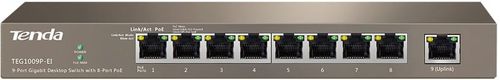 Tenda TEG1009P-EI to 9-portowy przełącznik Gigabit Desktop z 8 portami PoE. Przełącznik oferujący 9 portów GE Base-T Ethernet gdzie porty 1-8 obsługują standard IEEE802.3af PoE (15.4W), przełącznik pozwala także na pracę w standardzie 802.3at PoE (30W) na 4 portach. Poprzez standardową skrętkę kat.5e przełącznik pozwala przesyłać zasilanie wraz z danymi do urządzeń takich jak Acces point, kamera IP czy telefon IP (Voip) . Ponadto urządzenie jest zgodne ze standardem 802.3az (EEE) znanym również pod roboczą nazwę Energy-Efficient Ethernet co definiuje dynamiczną moc PoE, mniejsze zużycie energii i pracę bez wentylatora. Urządzenie posiada ochronę przed piorunami 4KV na 9 portach. Przełącznik dzięki swojej funkcjonalności pozwala na przesłanie danych oraz zasilania do 150m co jest idealnym rozwiązaniem przy budowie bardziej wymagających sieci na większej powierzchni.