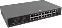 SF116F1 to 16-portowy switch PoE przeznaczony do zasilania kamer IPpracujących w standardzie IEEE 802.3af/at.Switch na portach od 1 do 16 posiada funkcję automatycznej detekcji urządzeń zasilanych w standardzie PoE. Portyoznaczone G1 oraz G2 służą do podłączenia kolejnych urządzeń sieciowych poprzez złącze RJ45. Switch posiada równieżgniazdo SFP, które po zastosowaniu modułu światłowodowego (wkładka GBIC) umożliwia transmisję po światłowodzie. Napanelu przednim znajduje się sygnalizacja stanu pracy urządzenia zrealizowana na diodach LED (opis w tabeli poniżej).