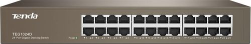 Switch Tenda TEG1024D to 24 portowy przełącznik umożliwiający obsługę gigabitowego połączenia Ethernet. Każdy z 24 portów urządzenia posiada funkcję automatycznego krosowania MDI/MDIX pozwalając na jego szybką instalację bez konieczności sprawdzania typu użytych kabli. Ponadto urządzenie jest zgodne ze standardem 802.3az (EEE) znanym również pod roboczą nazwę Energy-Efficient Ethernet co definiuje mniejsze zużycie energii i pracę bez wentylatora.. Przełącznik zbudowany jest na wysokiej klasy chipie marki Broadcom StrataConnect-series. Specjalna, niezawodna konstrukcja zapewnia ochronę zasilacza i portów przed piorunami indukcyjnymi do napięcia 6KV. Szybkość gigabitowa i zdolność przełączania do 48 Gb/s zapewnią skuteczną bazę nawet dla najbardziej wymagających aplikacji. Urządzenie pozwala na przesył dużych plików i grafik w całej sieci szybko i strumieniowo dla aplikacji, takich jak multimedia, VoIP, wideokonferencja i gry online bez żadnych zakłóceń ani opóźnień.