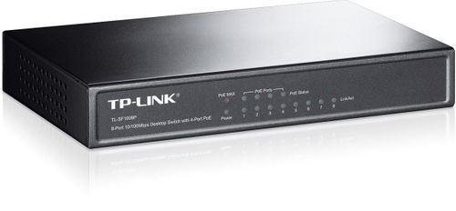 Przełącznik PoE TL-SF1008P posiada 8 portów RJ45 o prędkości 10/100Mb/s, nie wymagających konfiguracji. 4 z nich (1-4) obsługują funkcję Power over Ethernet (PoE). Przełącznik automatycznie wykrywa urządzenia PD działające w standardzie IEEE 802.3af i zaopatruje je w energię. Pozwala to rozszerzyć zasięg sieci w miejscach, w których nie ma dostępu do gniazd lub linii zasilających, a gdzie istnieje potrzeba umieszczenia punktów dostępowych, kamer IP, telefonów IP, itp.