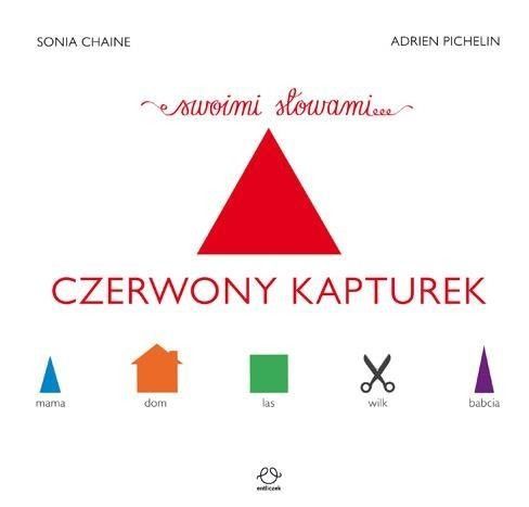 Takiej wersji baśni o Czerwonym Kapturku jeszcze nie było! To zaskakująca książka interaktywna, rozwijająca dziecięcą kreatywność, umiejętność logicznego myślenia i wysławiania się. Pierwszy tytuł z nowatorskiej serii "Swoimi Słowami" stworzonej przez francuski duet Sonię Chaine i Adriena Pichelina.Dzięki czytelnym piktogramom, przedstawiającym bohaterów oraz ważne dla historii miejsca i przedmioty, możesz opowiedzieć baśń o Czerwonym Kapturku na swój sposób. Na dołączonej do książki zakładce znajdziesz objaśnienia piktogramów oraz streszczenie baśni. Ale możesz też stworzyć własną, niepowtarzalną wersję tej znanej historii. Uwolnij swoją wyobraźnię i baw się dobrze!