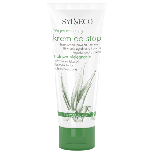 Hypoalergiczny, regenerujący krem do stóp, zawierający tylko naturalne składniki, przeznaczony jest do codziennej pielęgnacji suchej i zniszczonej skóry. Intensywnie i głęboko nawilża, natłuszcza i zmiękcza zrogowaciały, popękany naskórek. W skład kremu wchodzą roślinne ekstrakty aloesu oraz brzozy, które łagodzą podrażnienia, a olejek rozmarynowy działa kojąco i odświeża skórę.
