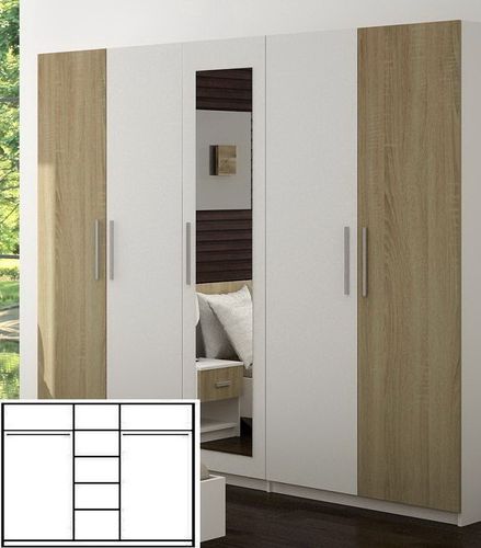Masz pytania? Skontaktuj się z nami! 696 333 130 lub 696 330 130 Opis produktu Nowoczesna szafa otwierana ALEX 5D! Szafa ALEX z pięcioma drzwiami otwieranymi klasycznie oraz z lustrem na środkowym froncie, dostępna w kolorze: biały + sonoma. Posiadająca przestronne wnętrze, które posiada dwa drążki na wieszaki po obu stronach oraz cztery półki w centralnej części szafy. Dodatkowe informacje:Meble wykonane są z wysokiej jakości płyty wiórowej laminowanej odpornej na zarysowania, z obrzeżami typu ABS.Meble dostarczane są w paczkach do samodzielnego montażu, wraz z instrukcją oraz okuciami. Wymiary szafy ALEX 5D:Wysokość: 210 cmSzerokość: 230 cmGłębokość: 55 cm Dostępna konfiguracja Szafa otwierana ALEX 5D dostępna w połączeniu kolorystycznym: Biały + Dąb sonoma. Galeria produktu GA STAR s.c.ul. Poznańska 963-300 Pleszewnip: 617-20-07-273regon 251460916 Meble dostarczymy do Ciebie własnym transportem!