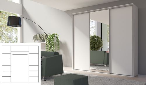 Masz pytania? Skontaktuj się z nami! 696 333 130 lub 696 330 130 Opis produktu Nowoczesna szafa przesuwna GRANDE 254! Nowoczesna szafa z trzema drzwiami przesuwnymi, dostępna w dwóch wariantach kolorystycznych, biała oraz imitująca lite drewno dąb sonoma. GRANDE to pojemna szafa o bardzo ciekawym i praktycznym wnętrzu, dostępna z frontem w całości z lustrem. To co wyróżnia szafę GRANDE to bardzo duża wysokość sięgająca aż 244cm. Szafa jest także bardzo szeroka, co daje jej niezwykle dużą pojemność. Szafy wykonane są z wysokiej jakości płyty wiórowej laminowanej odpornej na zarysowania, z obrzeżami typu ABS.Meble dostarczane są w paczkach do samodzielnego montażu, wraz z instrukcją oraz okuciami. Wymiary szafy GRANDE:Wysokość: 244 cmSzerokość: 254 cmGłębokość: 62 cm Dostępna konfiguracja Szafa przesuwna GRANDE w kolorze: biały lub dąb sonoma. Galeria produktu GA STAR s.c.ul. Poznańska 963-300 Pleszewnip: 617-20-07-273regon 251460916 Meble dostarczymy do Ciebie własnym transportem!