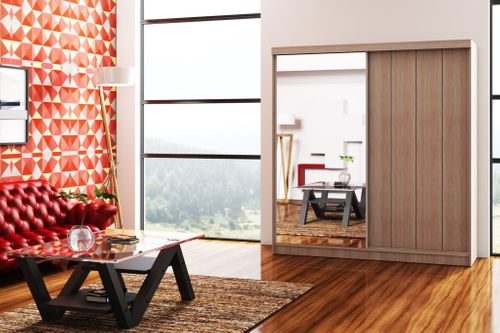 Spora gabarytowo szafa Londyn występuje w wielu bardzo atrakcyjnych i ożywiających wnętrza wersjach kolorystycznych. Jedną z zalet tej szafy jest niewątpliwie duże lustro na jednych z drzwi przesuwnych. Wyposażenie wewnętrzne szafy jest najlepsze z współcześnie możliwych, czyli wytrzymały drążek oraz półki. Wszystko to sprawdzi się w niejednej sypialni.