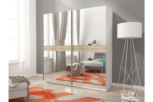 Szafa MIKA V KOLORYSTYKA:Szafa dostępna w kolorze BIAŁYM. Front z lustrem i ryflem dąb sonoma WYMIARY:Dostępna w rozmiarach 150 Szerokość: 150 Wysokość: 214 cmGłębokość: 63 cmWYKONANIE:Płyta wiórowa laminowanaOkleina ABSFront z lustremPRZEWIDYWANY CZAS REALIZACJI: 7 – 21 DNI Meble w paczkach do samodzielnego montażu wraz z instrukcją i akcesoriami.