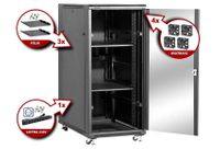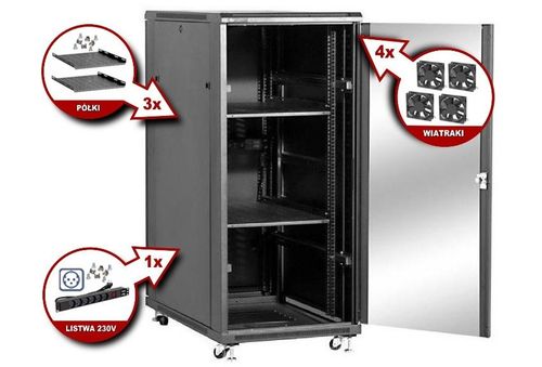 Szafy z grupy NCB posiadają wiele cech, które skracają czas montażu oraz instalacji a także dają możliwość elastycznego dopasowania ich do indywidualnych potrzeb użytkownika Szafy z grupy NCB posiadają wiele cech, które skracają czas montażu oraz instalacji a także dają możliwość elastycznego dopasowania ich do indywidualnych potrzeb użytkownika. W standardowym wyposażeniu znajduje się duża ilość dodatków, dzięki czemu całkowity koszt instalacji zostaje obniżony. Wszystkie szafy z tej grupy wyposażone są w zestaw półek, wentylatory, kółka transportowe, nogi regulowane oraz listwy zasilające. Na rynku polskim sprzedajemy szafy wyposażone w drzwi przednie przeszklone szkłem zadymionym oraz drzwi tylne pełne. Wszystkie szafy jak i akcesoria pomalowane są farbą w kolorze czarnym – RAL9004. W przypadku dużych wdrożeń, w których specyfikacja klienta wymaga innego standardu wykończenia, możemy dostarczyć szafy wyposażone w drzwi wybrane z siedmiu dostępnych modeli i/lub pomalowane farbą w kolorze beżowym – RAL7044