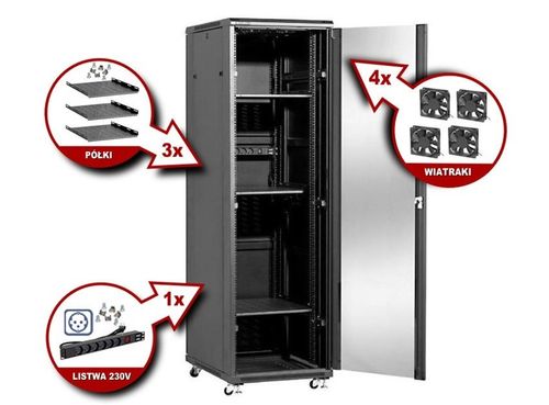 Szafy z grupy NCB posiadają wiele cech, które skracają czas montażu oraz instalacji a także dają możliwość elastycznego dopasowania ich do indywidualnych potrzeb użytkownika Szafy z grupy NCB posiadają wiele cech, które skracają czas montażu oraz instalacji a także dają możliwość elastycznego dopasowania ich do indywidualnych potrzeb użytkownika. W standardowym wyposażeniu znajduje się duża ilość dodatków, dzięki czemu całkowity koszt instalacji zostaje obniżony. Wszystkie szafy z tej grupy wyposażone są w zestaw półek, wentylatory, kółka transportowe, nogi regulowane oraz listwy zasilające. Na rynku polskim sprzedajemy szafy wyposażone w drzwi przednie przeszklone szkłem zadymionym oraz drzwi tylne pełne. Wszystkie szafy jak i akcesoria pomalowane są farbą w kolorze czarnym – RAL9004. W przypadku dużych wdrożeń, w których specyfikacja klienta wymaga innego standardu wykończenia, możemy dostarczyć szafy wyposażone w drzwi wybrane z siedmiu dostępnych modeli i/lub pomalowane farbą w kolorze beżowym – RAL7044