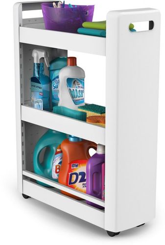 Uniwersalna i wielofunkcyjna szafka na kółkach, zmieści się nawet na bardzo małej przestrzeni, zapewniając dodatkowe miejsce do przechowywania. Pozwala na maksymalne zagospodarowanie małego pomieszczenia, jednocześnie umożliwia wygodny dostęp do przechowywanych przedmiotów. Można ją ustawić między meblami lub tam gdzie mamy mało miejsca. Idealnie nadaje się do małej łazienki, na półkach z łatwością można ułożyć wszelkie kosmetyki lub detergenty. Ułatwia zagospodarowanie niewykorzystanej lub nieustawnej przestrzeni w kuchni, można wstawić ją między szafki lub schować pod stołem, wówczas na półkach bez problemu zmieszczą się puszki, butelki, przybory do gotowania lub książki kucharskie. Szafka posiada 4 kółka, które ułatwiają przesuwanie. Biały kolor oraz prosty wzór sprawią, że pasuje do większości wnętrz, dzięki swojej prostocie zajmuje mało miejsca.