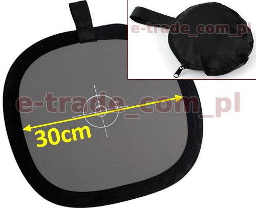 Szara karta (grey panel) 30x30 cm dwie płaszczyzny: szara i biała Szara płaszczyzna - odbija 18% padającego światła (tzw. szarość średnia, znajdująca się prawie dokładnie pośrodku między czernią a bielą). Wyposażona w nadruk ułatwiający ustawienie ostrości. Dzięki szarej karcie można dokładnie ustalić ekspozycję w trudnych warunkach oświetleniowych lub przy robieniu zdjęć obiektów o odbijającej powierzchni (która wprowadza w błąd światłomierz wbudowany w aparacie). Światłomierze w aparatach dają najdokładniejsze pomiary ekspozycji po pomiarze światła na szarą kartę. W przypadku pomiarów na inny obiekt niż szara karta, dodatkowe atrybuty takie jak kolor, faktura czy połyskliwość będą zaburzały prawidłowy pomiar. Jak to działa? szarą kartę umieść przed fotografowanym przedmiotem widząc szarą kartę w polu celownika, wciśnij spust migawki dla ustawienia prawidłowej ostrości (dzięki nadrukowi na szarej karcie zrobisz to bez problemów) po ustawieniu ostrości następuje pomiar oświetlenia na szarej karcie (dla jak najlepszego efektu należy ustawić pomiar oświetlenia w trybie punktowym. W przypadku pracy w trybie manualnym należy dobrać parametry przysłony i czasu według wskazań światłomierza) po odsunięciu szarej karty wciśnij spust migawki do końca - wykonasz zdjęcie, a fotografia będzie prawidłowo naświetlona Biała płaszczyzna - odbija 90% padającego światła. Jest doskonałym narzędziem do ustawienia balansu bieli i uzyskania prawidłowego odwzorowania kolorów na zdjęciu. Niezastąpiona w sytuacjach, gdy oświetlenie danej sceny nie odpowiada żadnemu z wzorców bieli zaprogramowanych w aparacie lub gdy jest mieszane i składa się ze źródeł światła o różnych temperaturach barwowych - np. oświetlony żarówką pokój (3200K), do którego wpada przez okno światło słoneczne (5500K). Jak to działa? zrób zdjęcie białej karty tak, aby pokrywała cały kadr w menu aparatu przestaw balans bieli na Custom WB wprowadź wzorzec bieli z wykonanego wcześniej zdjęcia - kolejne fotografie będą wykonane z naturalnym balansem kolorów (bez zażółceń lub niebieskości spowodowanych danym oświetleniem)