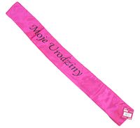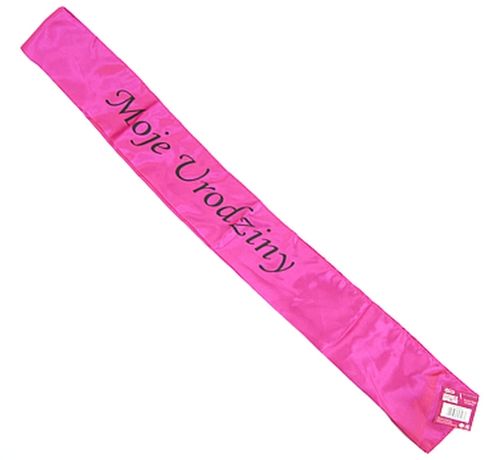 Opakowanie zawiera 1 sztukę satynowej szarfy z nadrukiem "MOJE URODZINY".