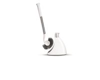 Smukły, zaokrąglony stojak stabilnie utrzymuje szczotkę, dyskretnie dbając o higienę otoczenia.