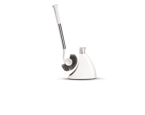 Zaprojektowane przez Simplehuman narzędzie dociera nawet w trudno osiągalne dla standardowych, okrągłych szczotek rejony wokół obręczy muszli. Zewnętrzne, twarde włosie szczotki efektywnie czyści trudne do usunięcia plamy.