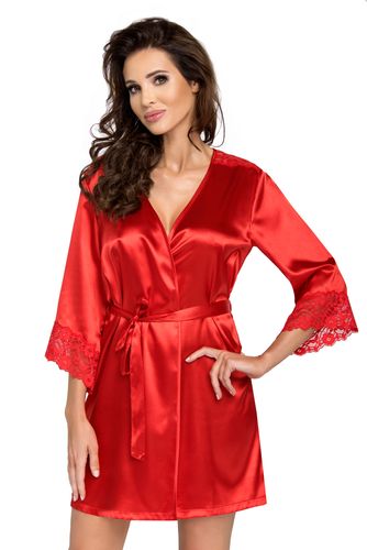 Elegancki szlafrok wykonany z satyny wysokiej jakości. Dopełniony wstawkami z pięknej koronki. Oto idealna propozycja dla każdej kobiety. Miękka, delikatna tkanina o perłowym blasku. Kobiecy fason z wiązanieniem, które podkreśla talię. Modne rękawy o długości 3/4. Idealny również na prezent. Produkt pakowany w pudełeczko. Skład: 98% poliester, 2% elastan.
