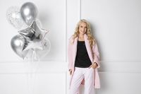 Szlafrok, w którym można się zakochać. Cudowny, różowy, pastelowy kolor, do tego pikowana, miękka tkanina, bardzo delikatna i wyjątkowo przyjemna w dotyku. Zgrabny krój, podkreślony pięknym, szalowym kołnierzem, wiązaniem w pasie i kieszonkami na biodrach. Na piersi - złota korona i napis Quenn. Oto szlafrok dla prawdziwej królowej wdzięku. Skład: 100% poliester.