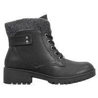 Modne i wygodne botki damskie w kolorze czarnym. Buty wyprodukowano ze skóry ekologicznej najwyższej jakości. Odpowiednio zaprojektowana podeszwa gwarantuje wygodę oraz stabilność w czasie chodzenia. Sznurowanie pozwala na idealne dopasowanie obuwia do każdej stopy. Buty będą świetnym uzupełnieniem wielu stylizacji.